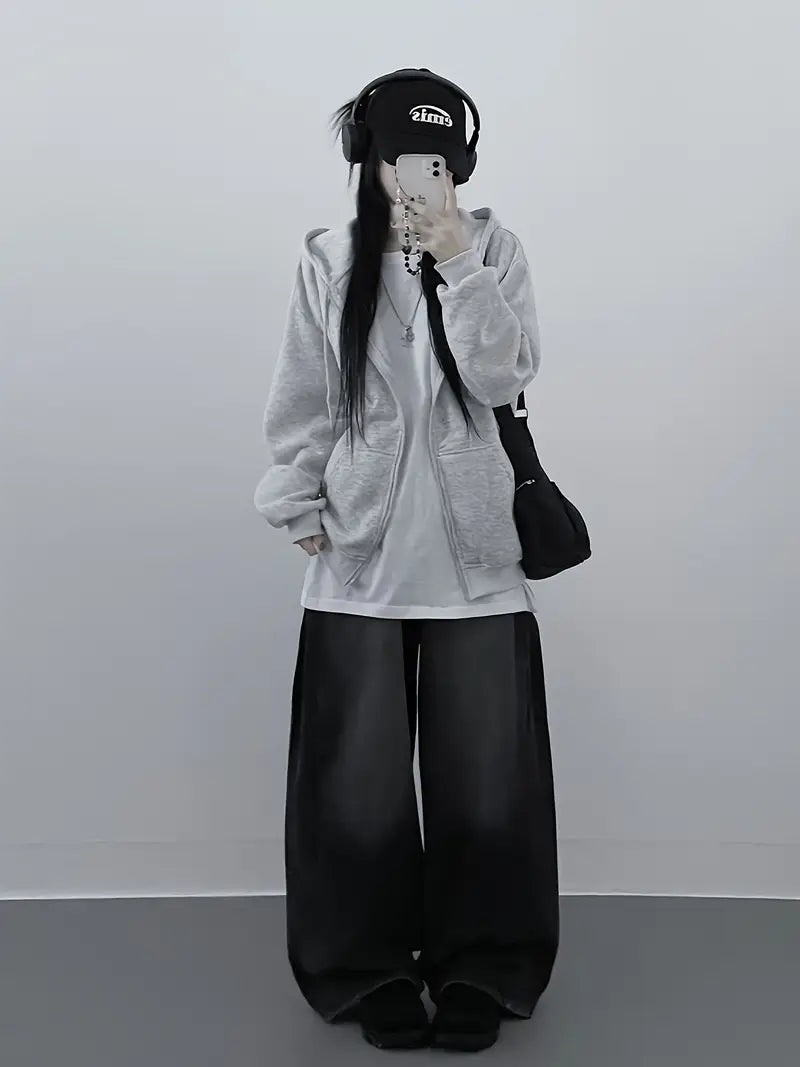 Women'S Lightweight Hooded Zip-Up Jacket - Loose Fit Long Sleeve Casual Outerwear, Front Zipper Closure, Fall/Winter Layering Essential for Everyday & Formal Outfits