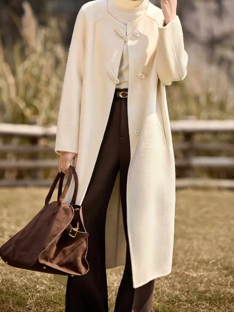 Women's Winter Tweed Coat - Long Alpaca Coat with Pockets, H-Silhouette Regular Fit, Dry Clean Only Elegant Outerwear